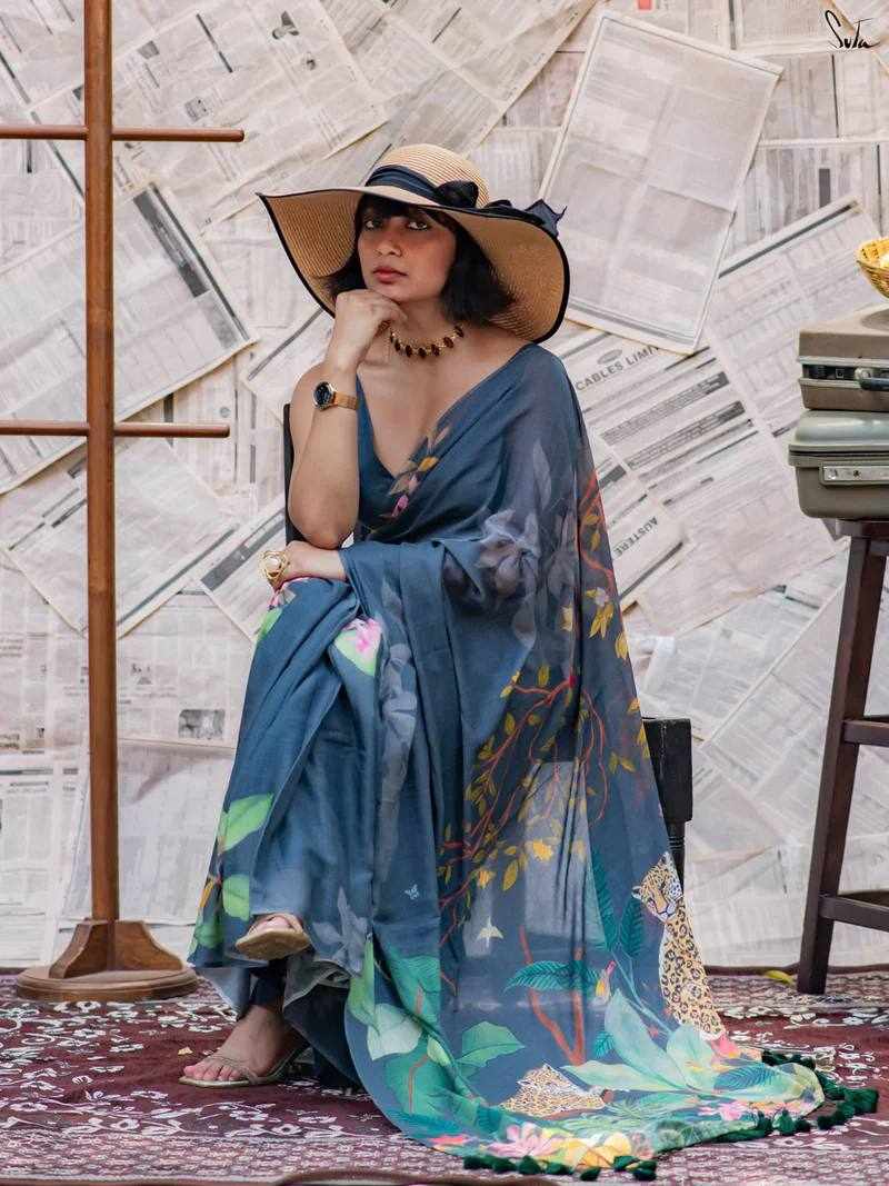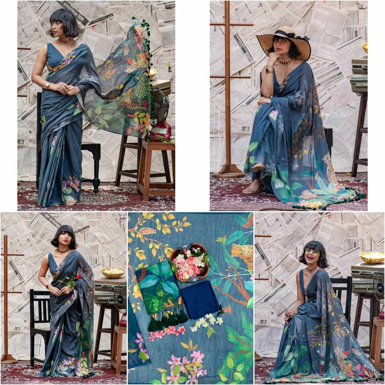 Fabric: Linen Cotton with beautiful digital print and handmade cotton tassels (5.5 m cut)