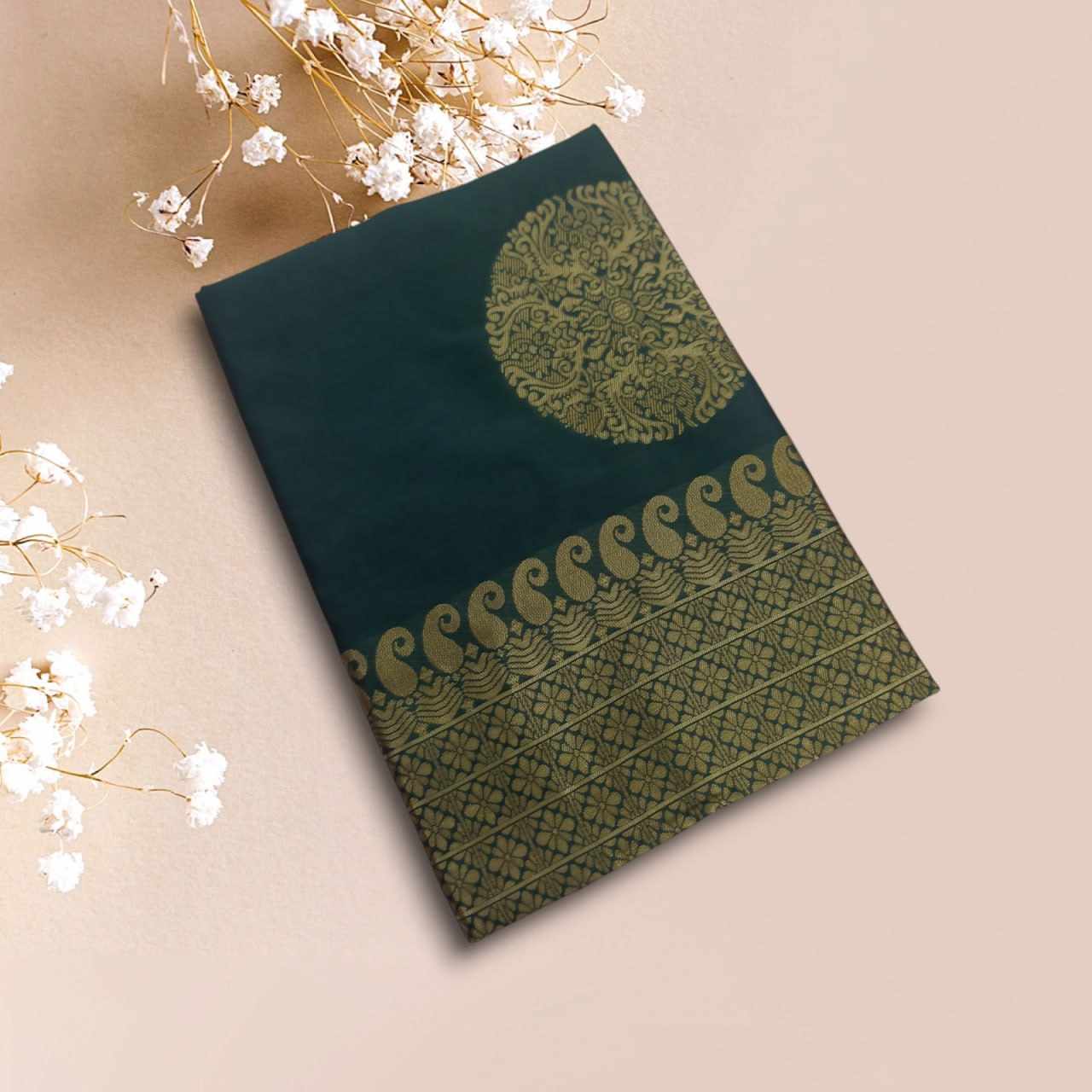 MF 1740 DARK GREEN BEAUTIFUL RICH PALLU SAREE
