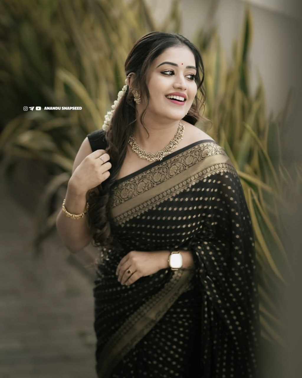 MF 1830 BLACK SOFT LICHI SILK SAREE