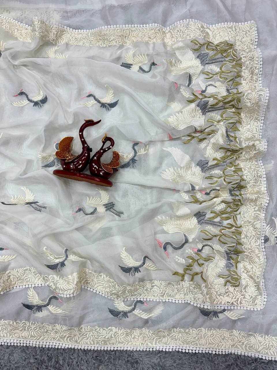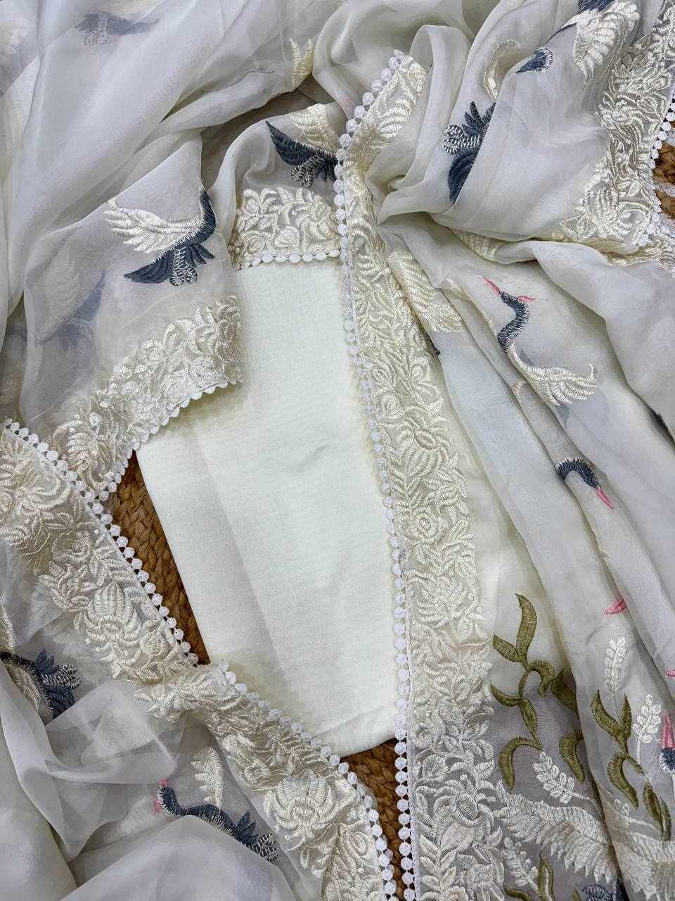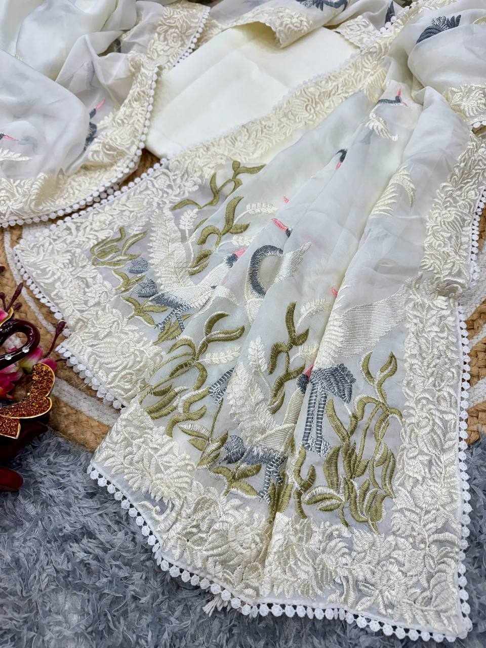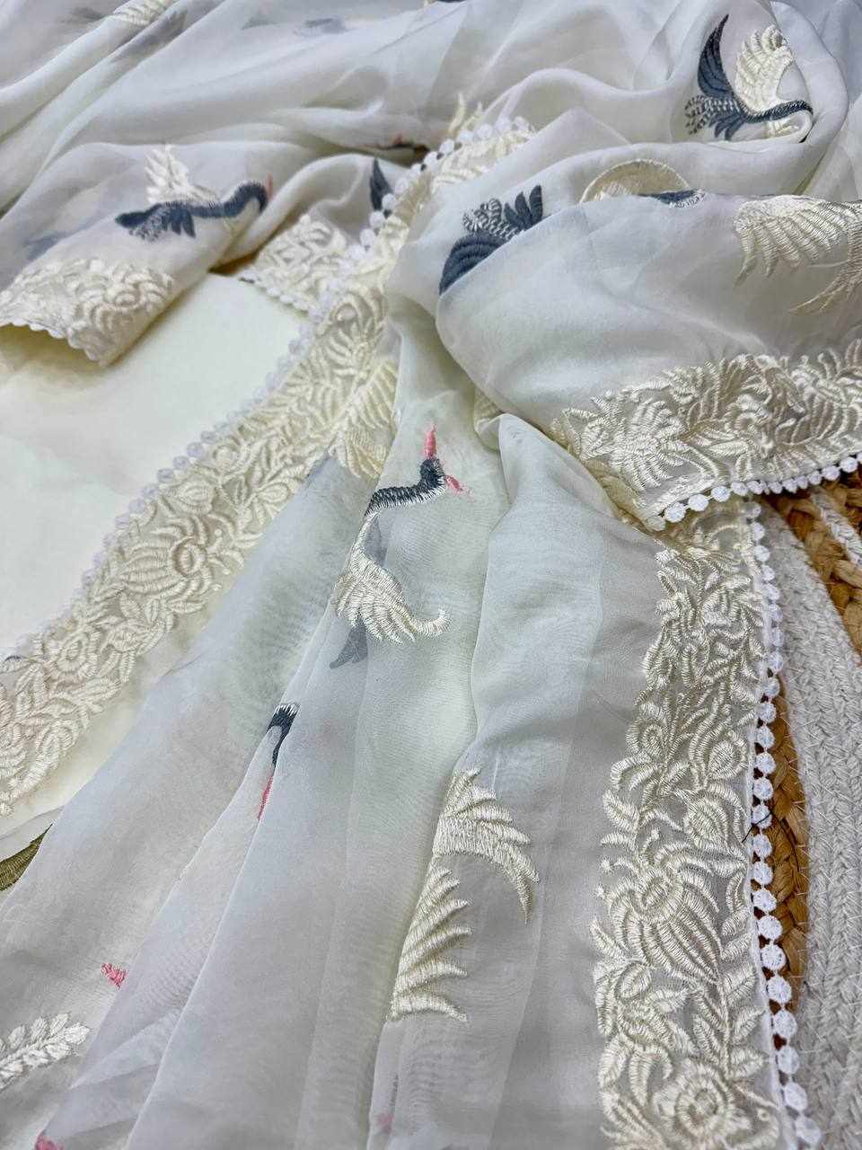 WORK: Beautiful multicolor thread embroidery work with fancy lace border