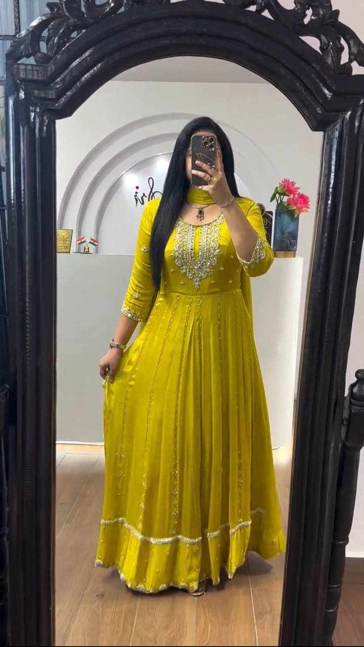 | Name : | Pc 435 Yellow Chinon Embroidery Sequence Gown |