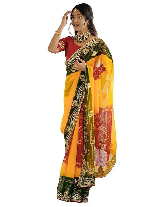 Reviews for PIYU P1030 mor bandhani Yellow-Red Saree
