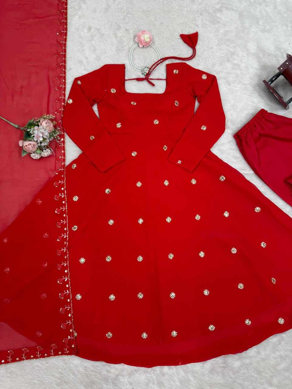 RTC 5872 Foux Gorgette Beads with moti handwork Readymade Dress has been successfully added to your cart .