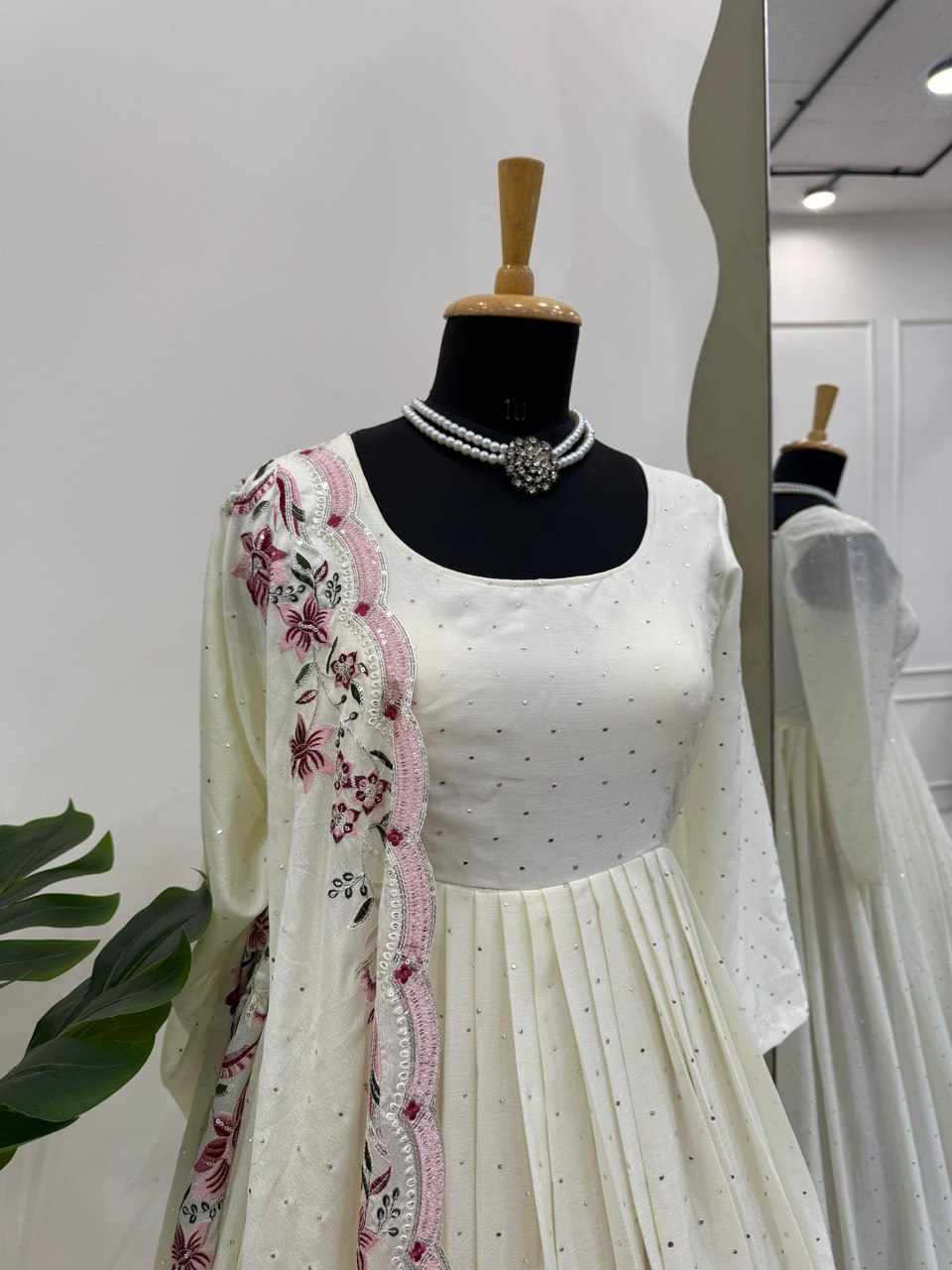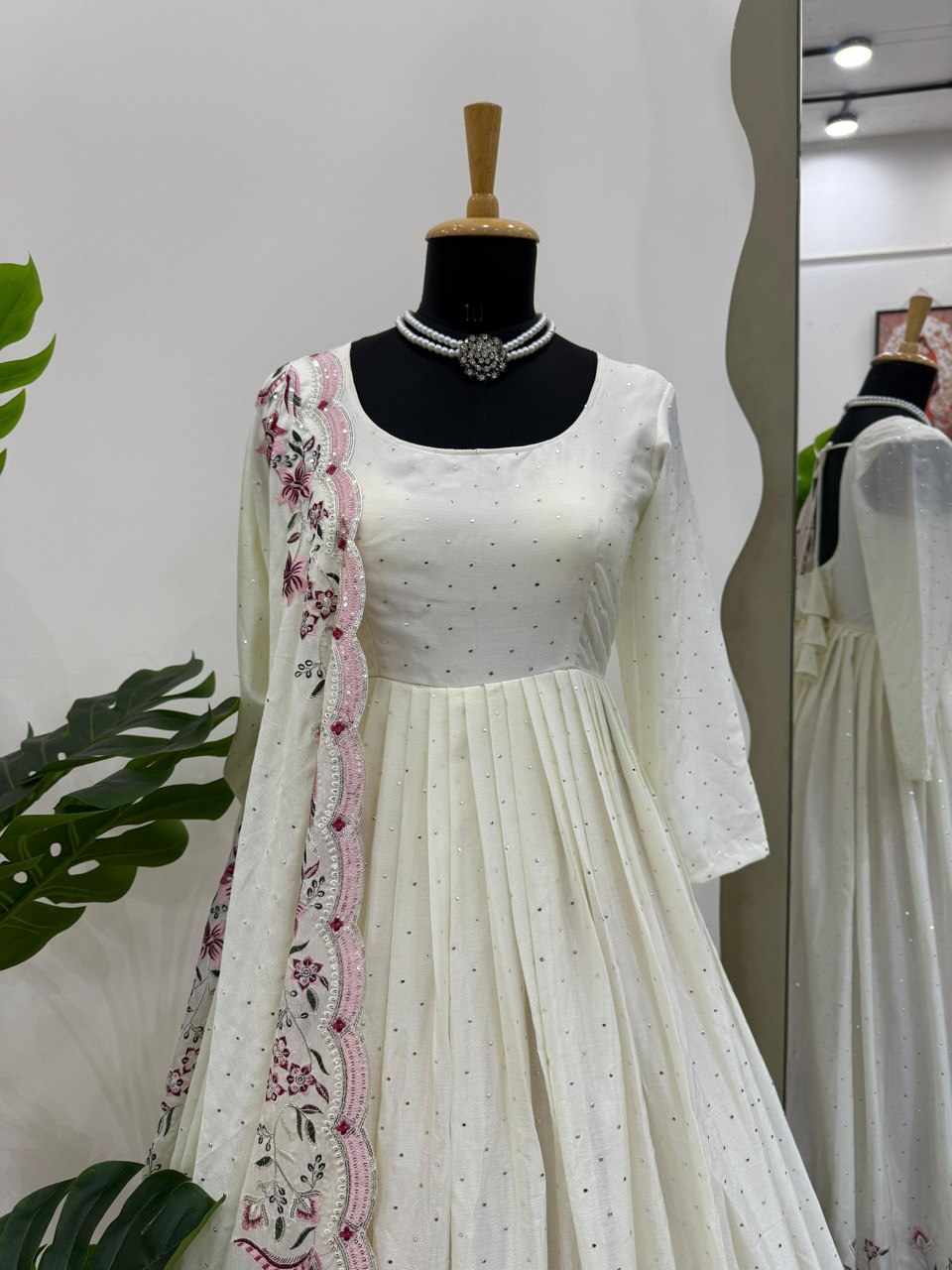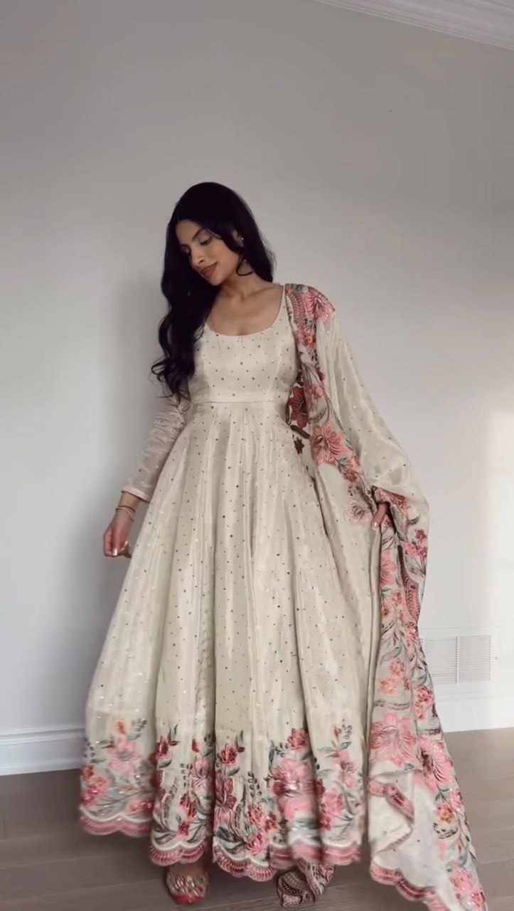 | Name : | RTC 5873 Chinon silk thread with Sequnce Off White Readymade Dress |