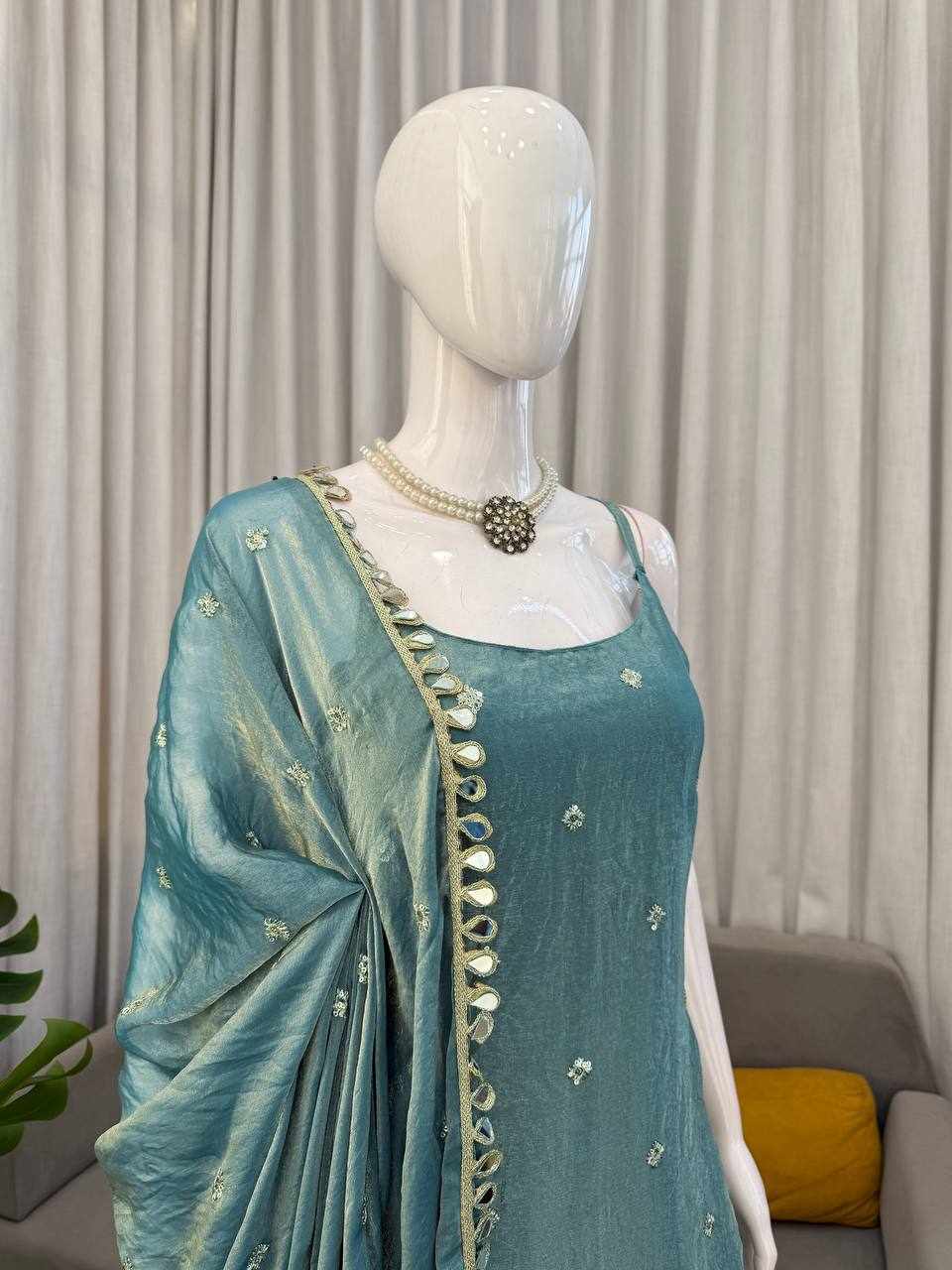 Designer Fendy Silk Kurti Plazo Set with Mirror Work Dupatta