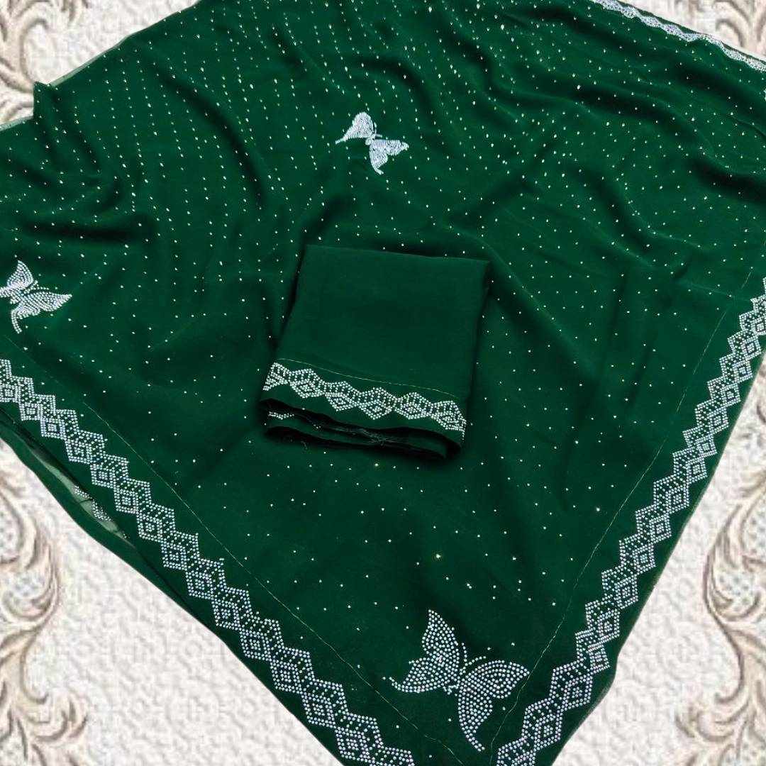 | Name : | S4s Green Siroski Butterfly Stones Lace Georgette Party Wear Saree |