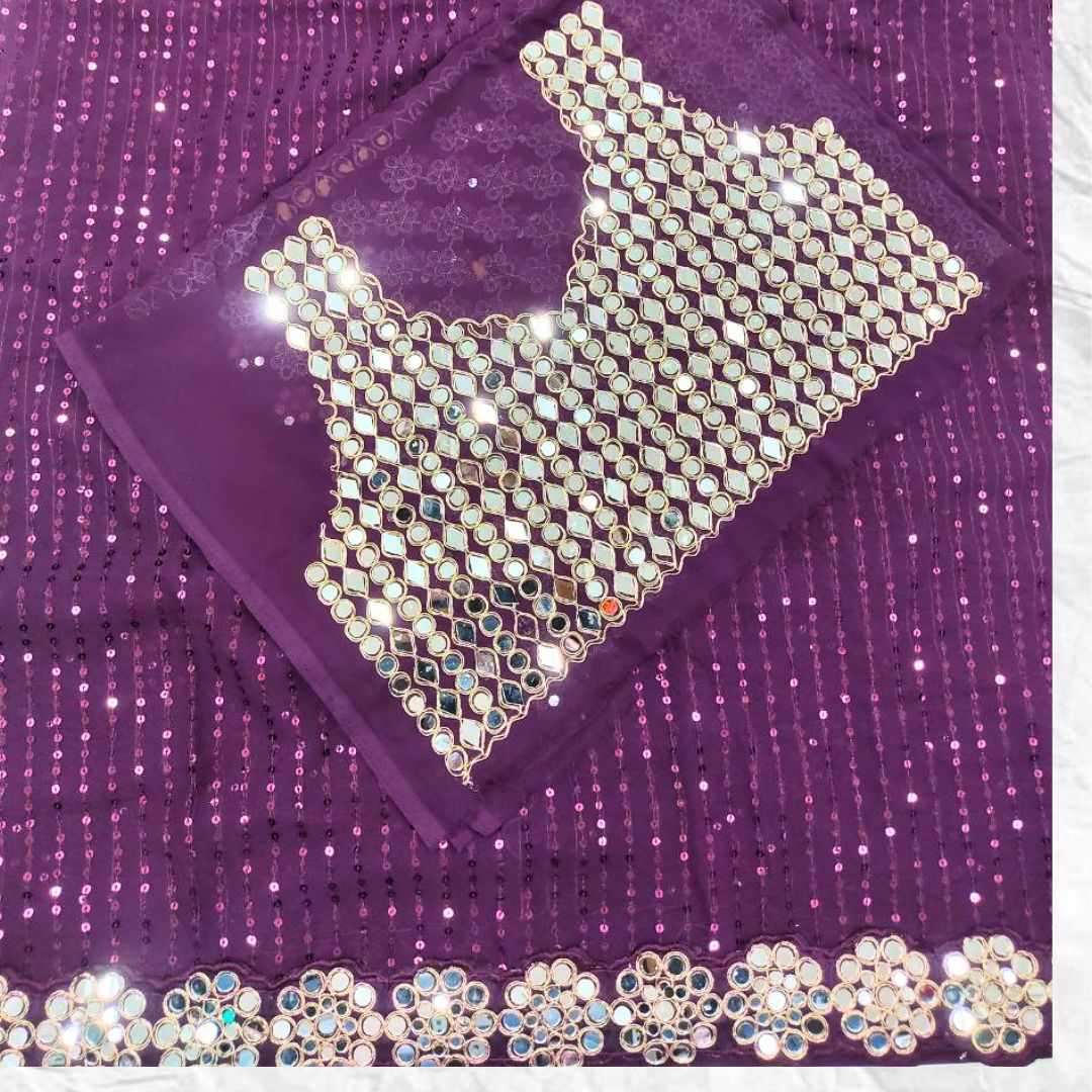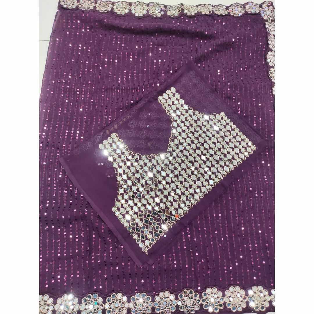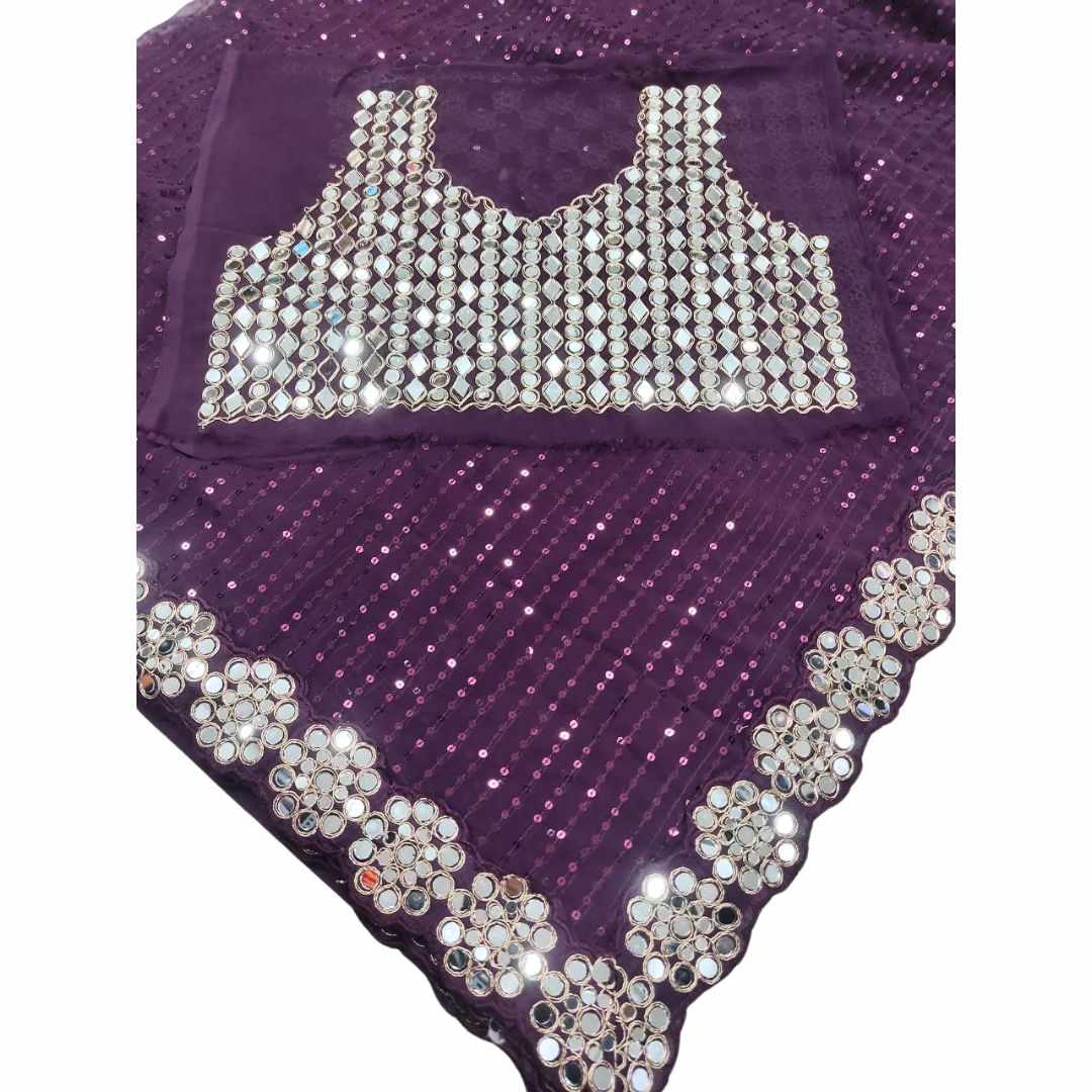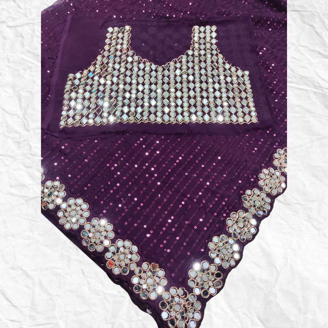 Heavy Georgette Blouse With Heavy Embroidery Front & Back With sleeves With Heavy Original Mirror