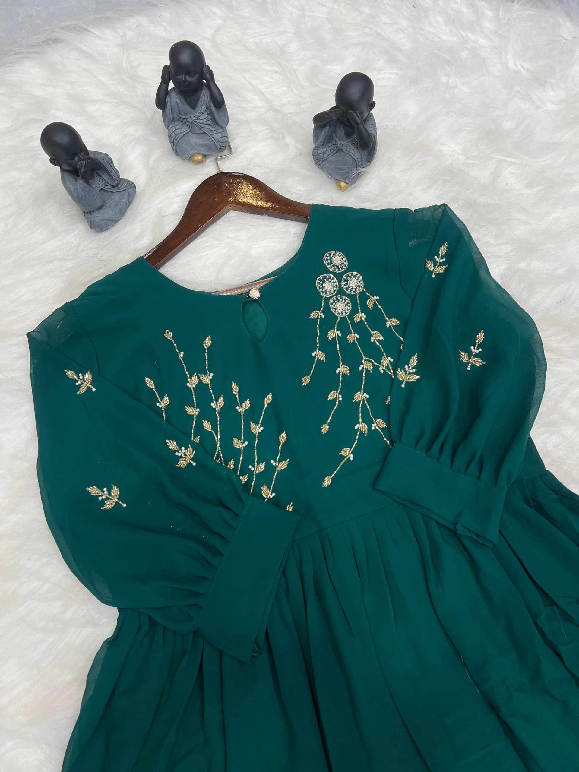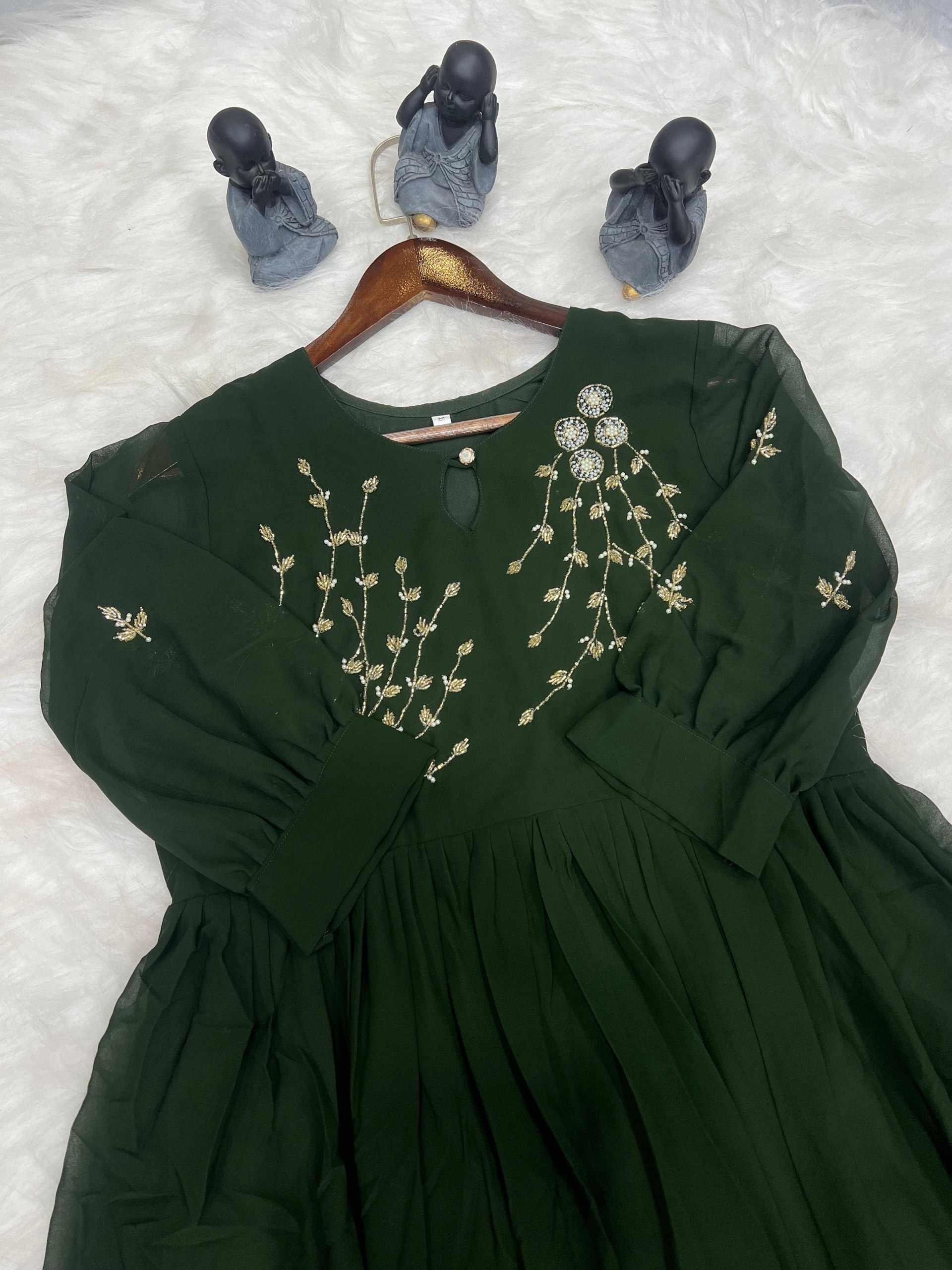 WM09 GREEN BLOOMING GEORGETTE HANDWORK KURTI