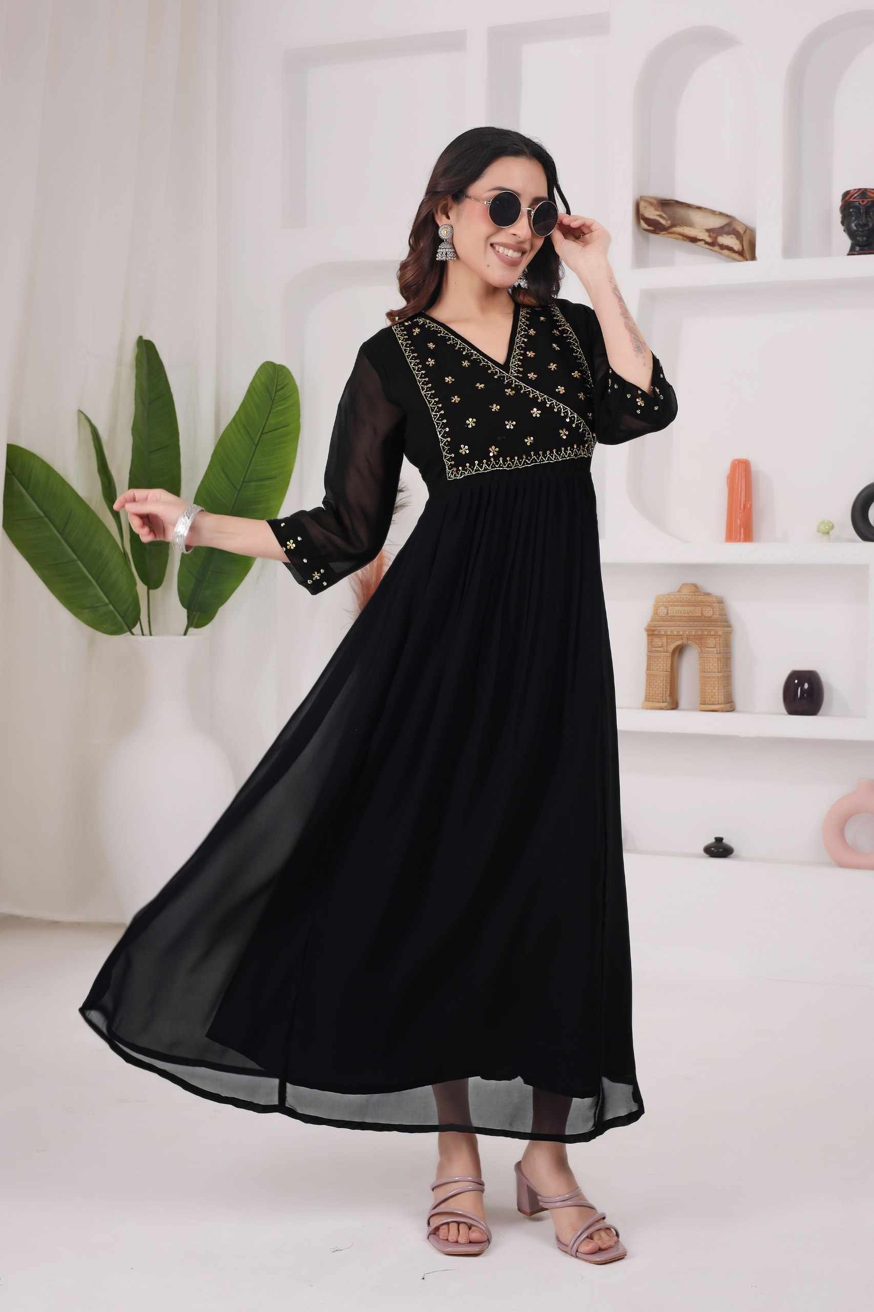 Reviews for WM12 BLACK BLOOMING GEORGETTE BEAUTIFUL HANDWORK KURTI