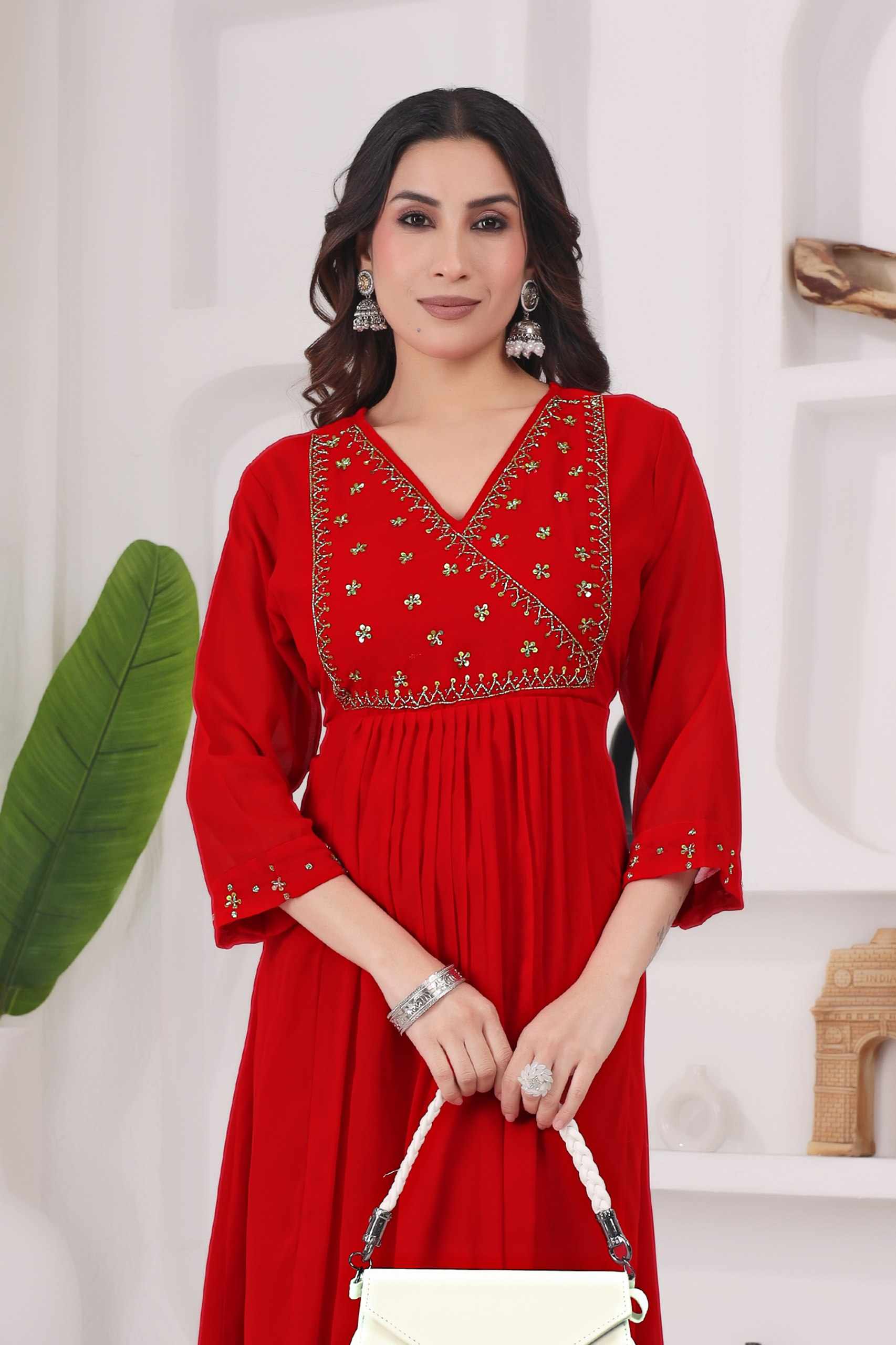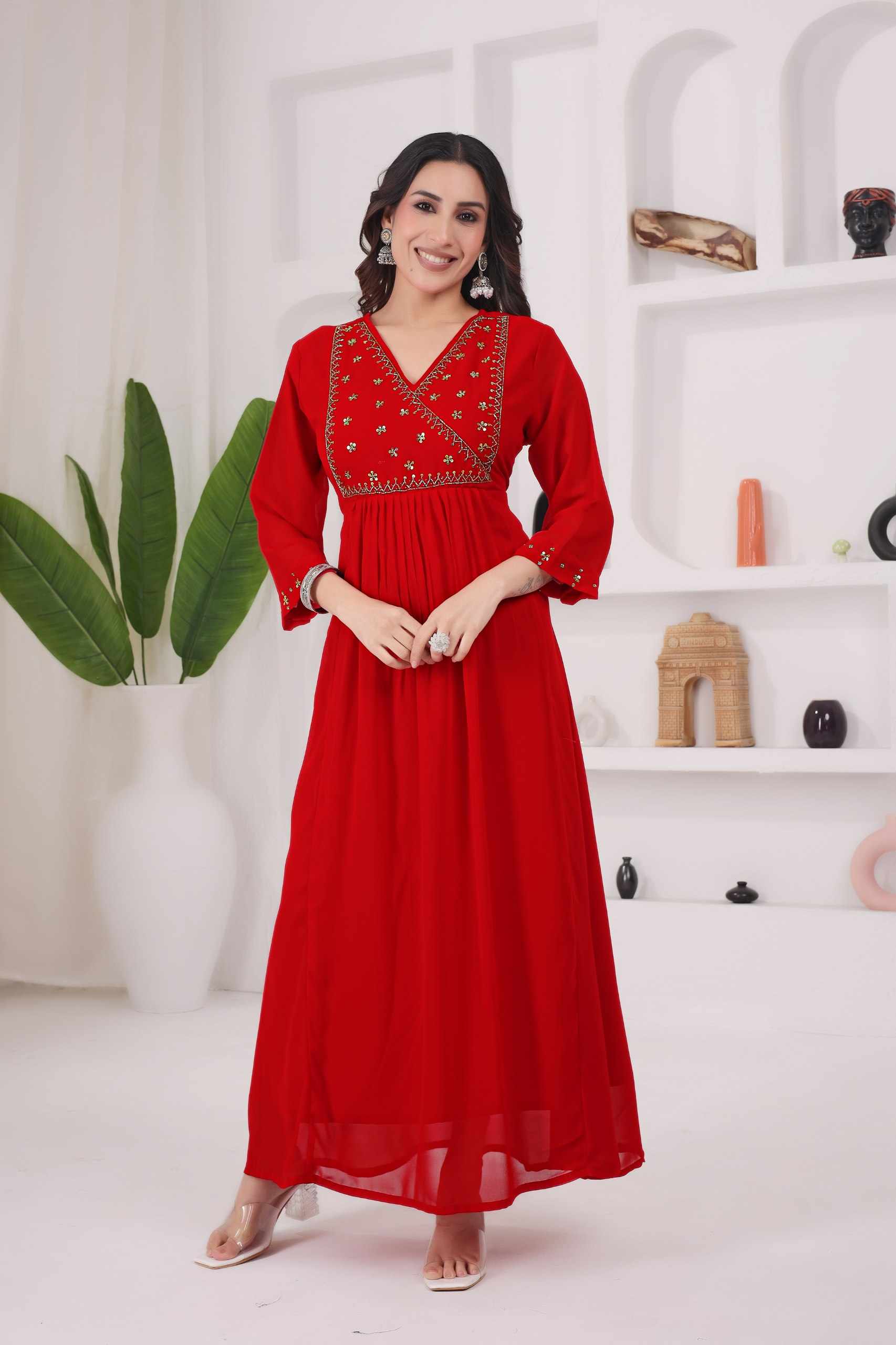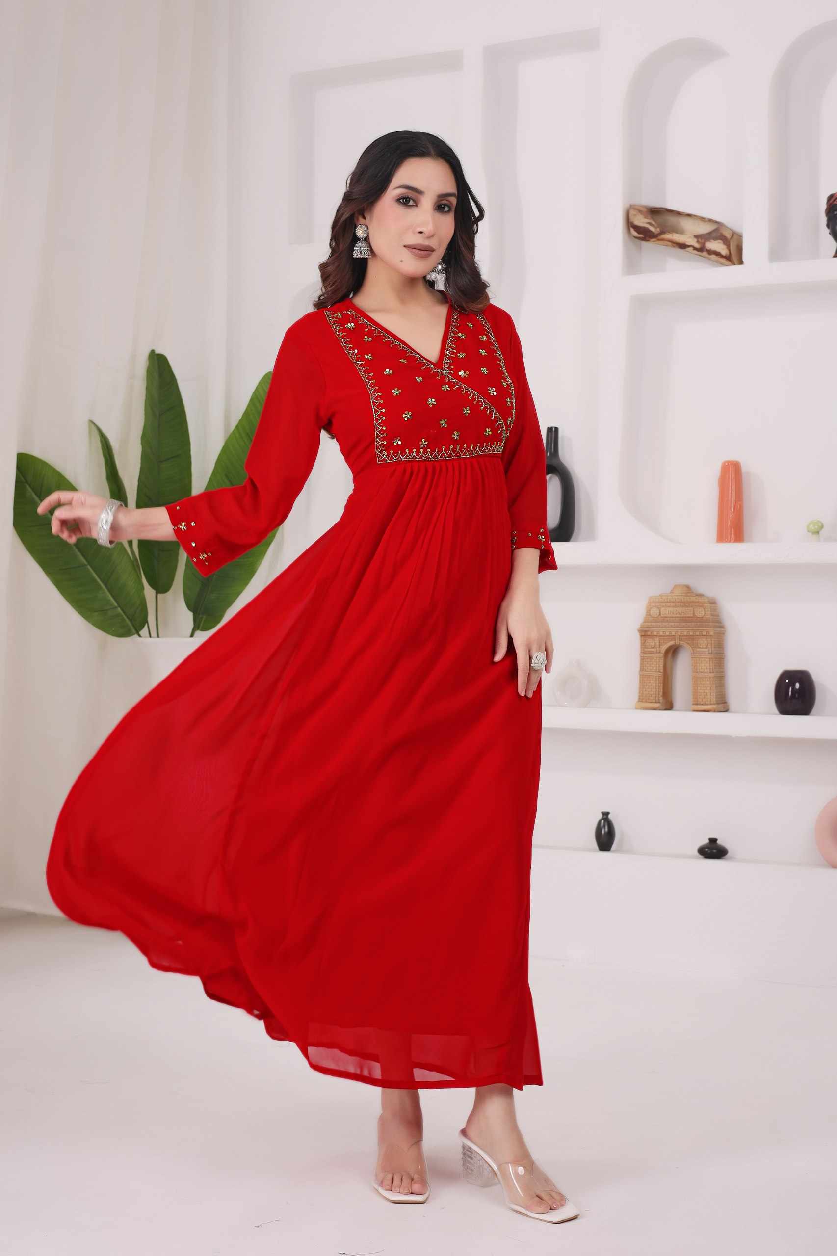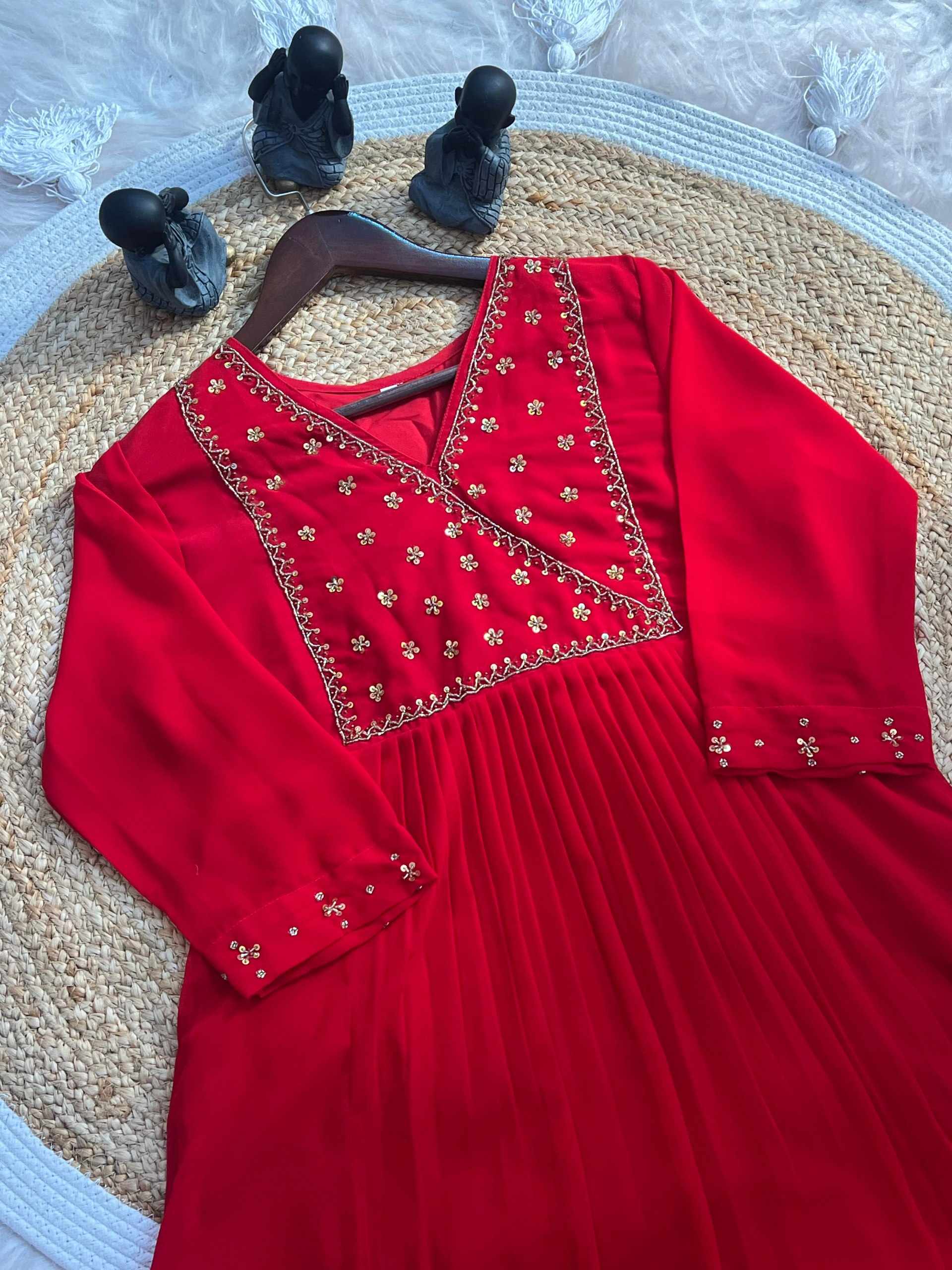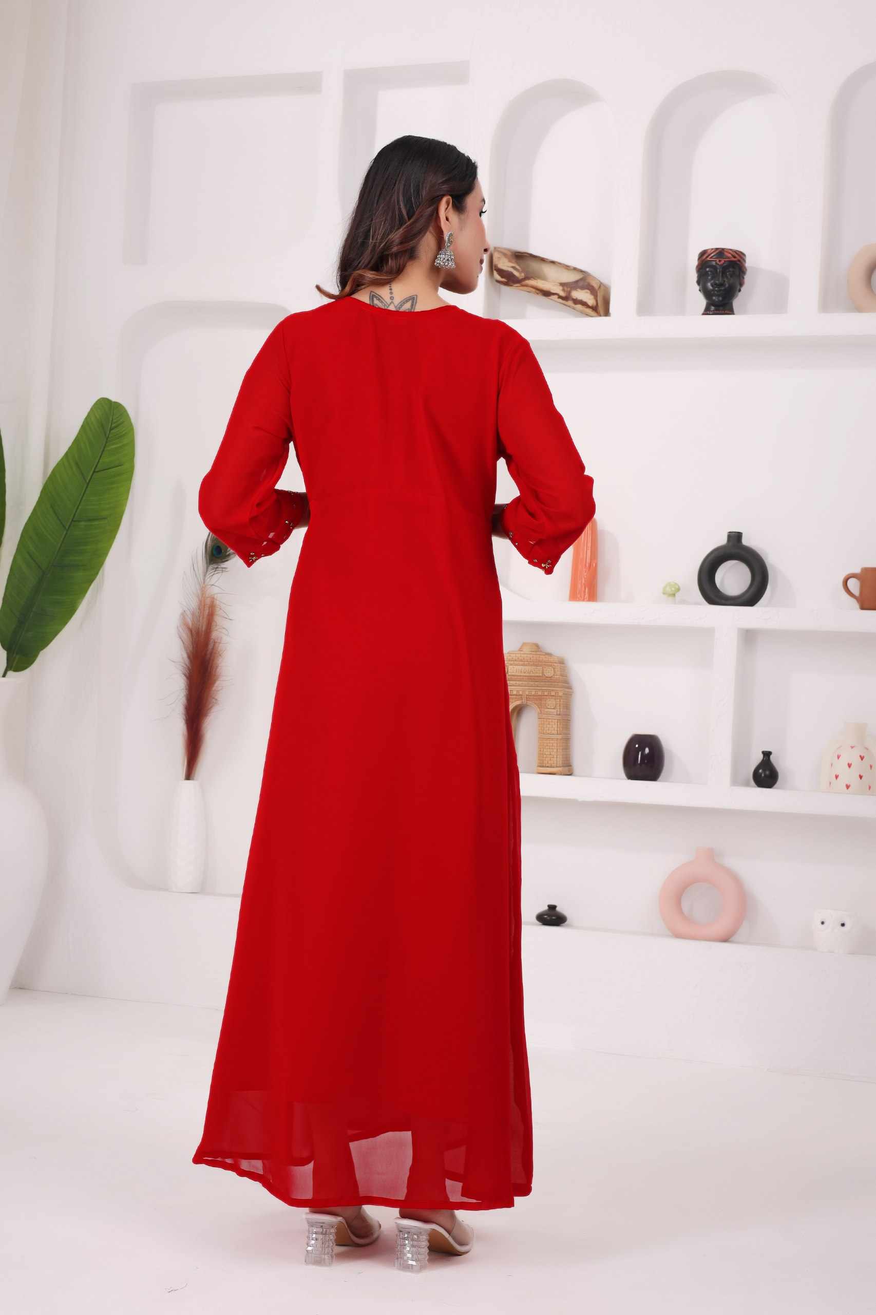 Reviews for WM12 RED BLOOMING GEORGETTE BEAUTIFUL HANDWORK KURTI